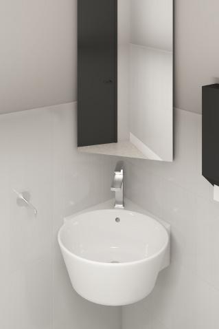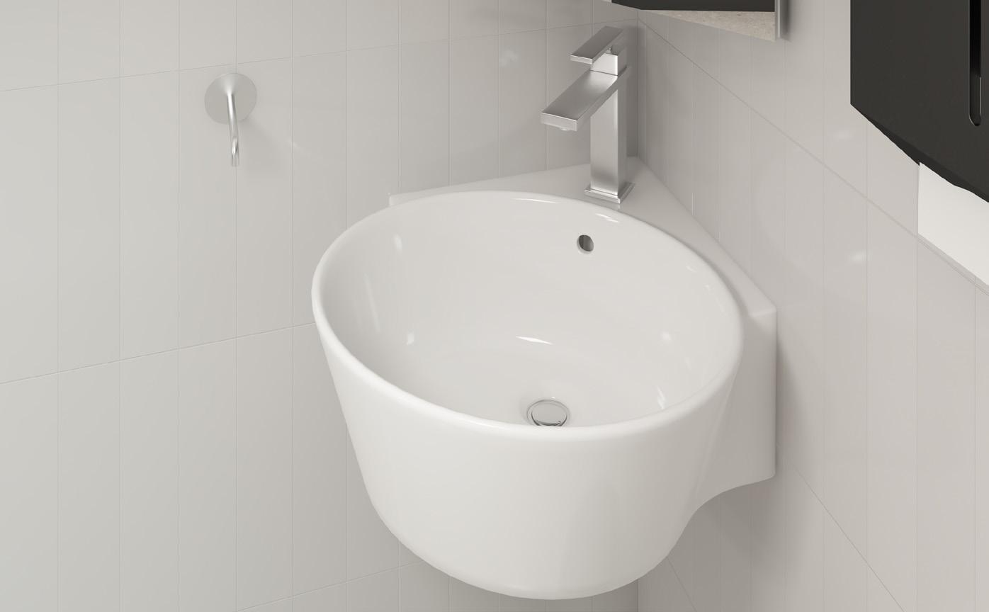 The Edgeview is a sleek, Fine Fireclay corner sink with a slim rim profile, rear overflow hole, and single hole faucet center. Its modern design maximizes bathroom space while providing durability, style, and convenience to your daily routine.