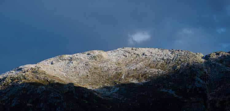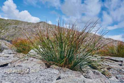 samanhengande vegetasjon, helst berre spreidde, hardføre planter, som fjellkvein, fjellmarikåpe, fjellgulaks, stivstorr, rabbesiv, greplyng, fjell-lusegras, mjukrapp og fjelltjøreblom. Det er vel helst utsikta folk flest er opptatt av på Gullfjellstoppen, og den er flott, men legg merke til dei små grastustane neste gong du er der. Dei er hardhausar som heldt til her heile året, år etter år. Dei har ingen varm dusj og stove å kome heim til etter turen, dei står på same staden når det blir mørkt og kaldt, når det er stille og når stormen rasar og regnet piskar. Derfor bøyer eg meg i ærefrykt ned til dei når eg møter dei, og