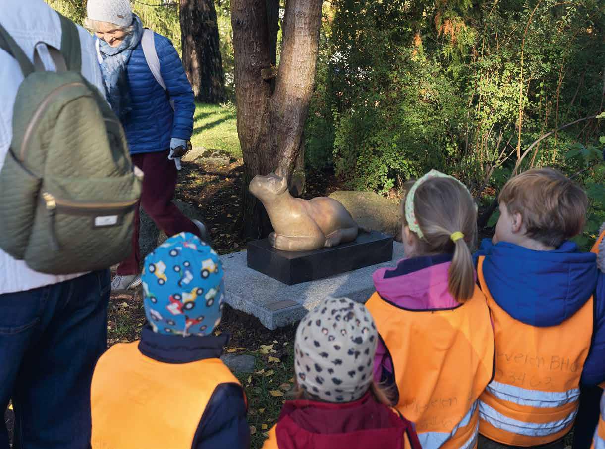 Framtidens kunstobservatører ved avdukingen av Kjersti Wexelsen Goksøyrs Snart fremme, høsten 2024.