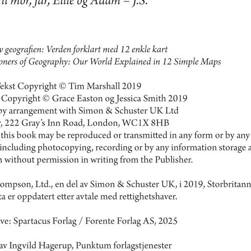Hvordan ble USA en supermakt? Hvorfor går folk til krig? Og hvorfor er noen land rike mens andre er fattige? Svarene på disse spørsmålene, og mange flere, finner du i denne lærerike boken, som med tolv enkle kart forklarer hvordan geografien har formet verdenshistorien.