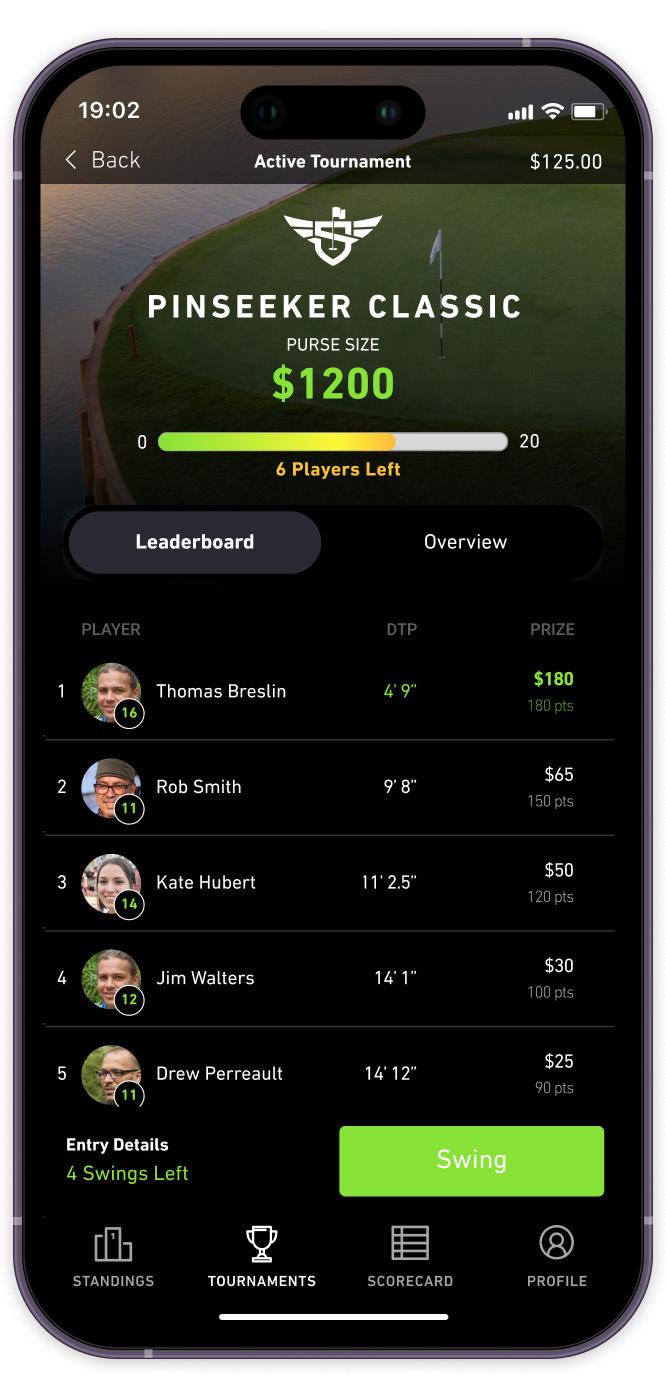 Playing in a PinSeeker tournament is easy. Find a simulator, download the app, and start swinging.