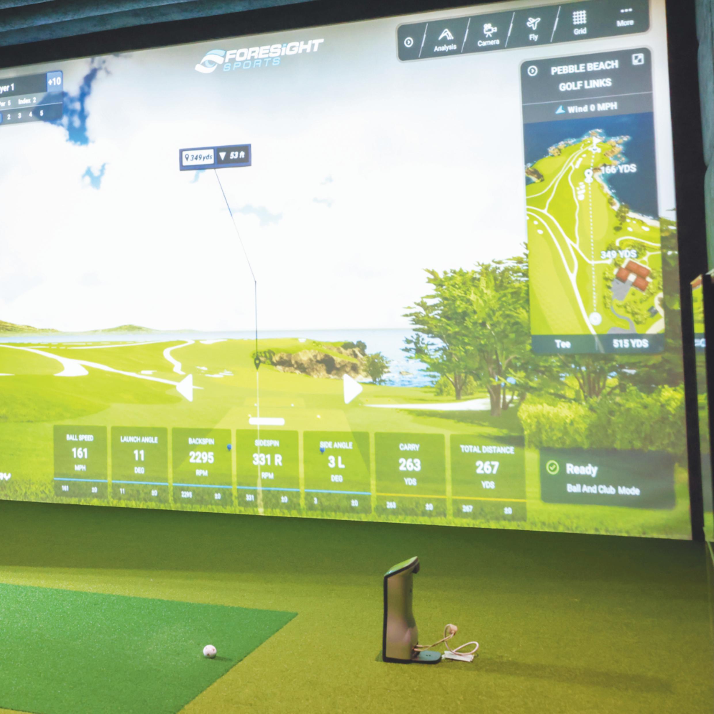 Nous avons conçu et installé un simulateur personnalisé au format 16:10, avec des panneaux entièrement capitonnés sur les murs et le plafond pour un rendu luxueux. Le GCQuad, le moniteur de lancement le plus utilisé dans l'industrie, offrira une précision inégalée et des données directement mesurées pour la balle et le club, garantissant ainsi une précision parfaite à chaque session.