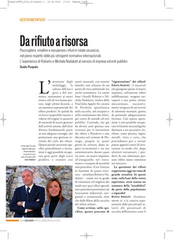 Da rifiuto a risorsa Raccogliere, smaltire e recuperare i rifiuti in totale sicurezza, nel pieno rispetto delle più stringenti normative internazionali. L’esperienza di Roberto e Michela Nadalutti al servizio di imprese ed enti pubblici Guido Puopolo