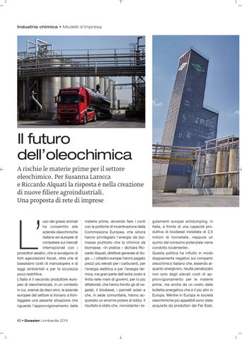 Il futuro dell’oleochimica A rischio le materie prime per il settore oleochimico. Per Susanna Larocca e Riccardo Alquati la risposta è nella creazione di nuove filiere agroindustriali. Una proposta di rete di imprese