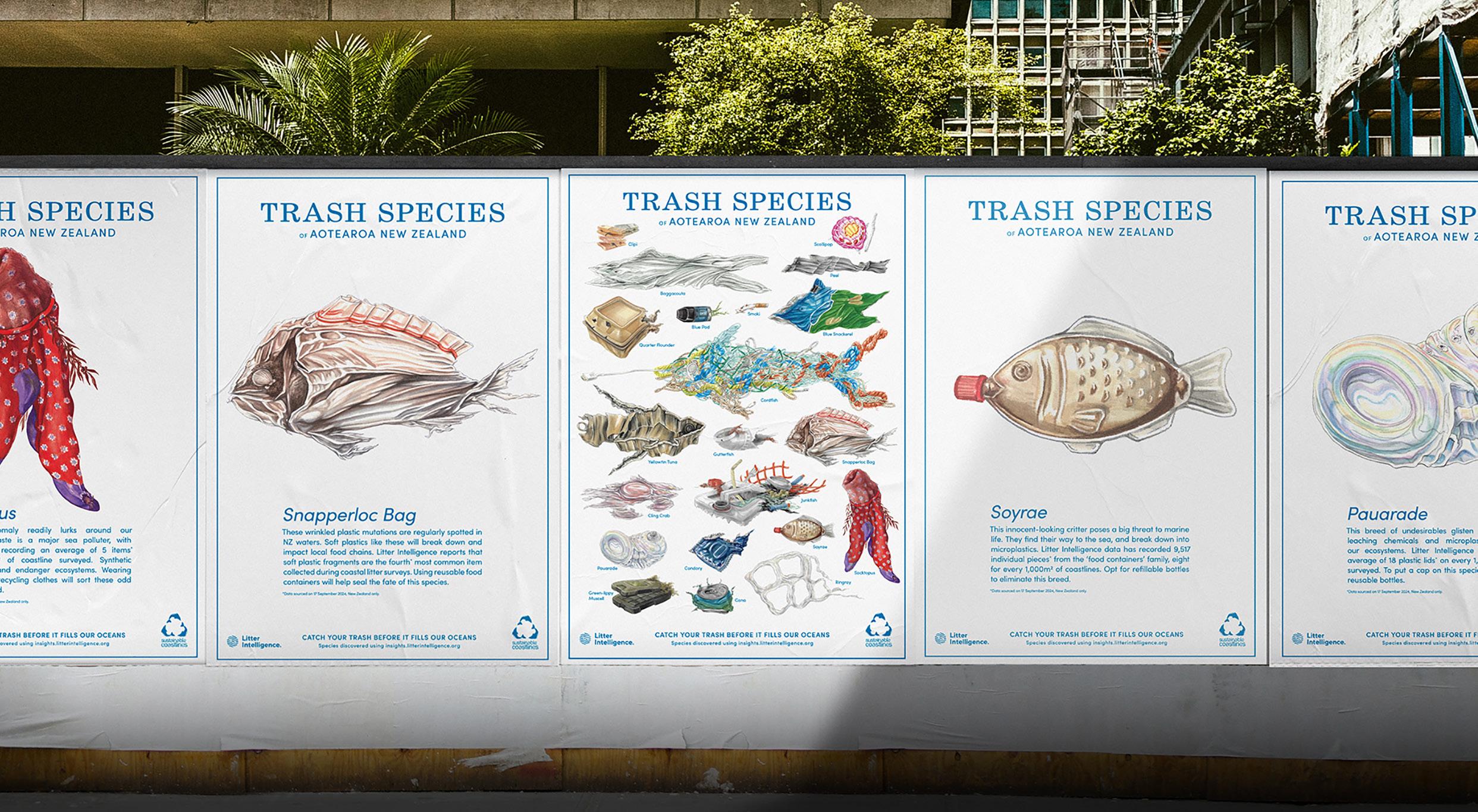This clever twist on a Kiwi icon has a serious message and encourages people to take care of their litter to prevent these trash species taking over our oceans and beaches.