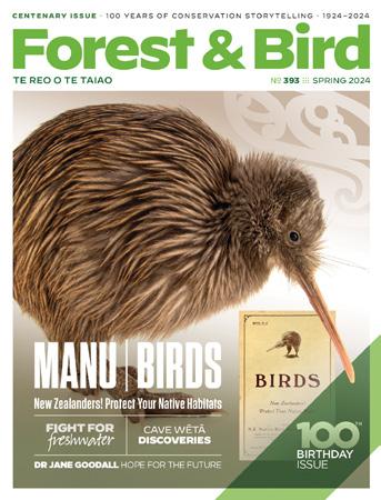 Every member receives four copies of Forest & Bird magazine a year. Forest & Bird is published quarterly by the Royal Forest and Bird Protection Society of New Zealand Inc. Registered at PO Headquarters, Wellington, as a magazine. ISSN 0015-7384 (Print), ISSN 2624-1307 (Online). Copyright: All rights reserved. Opinions expressed by contributors in the magazine are not necessarily those of Forest & Bird.