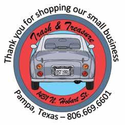 FOCUS Magazine | Fall 202256 Thrift & Resale 1001 East Frederic Ave. Pampa, Texas 79065 (Across from Kelly’s Deli) UNIQUE FINDS I UNEXPECTED TREASURES Carla & Bucky Buchanan, Owners 806-663-6906 Carbucks Recycling 806-663-6907 We Buy Scrap Iron Junk Cars w/Titles Property Clean-up