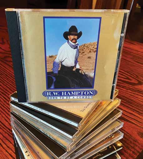 Hampton dreamed of being a cowboy during his childhood in north-central Texas. He owned a horse and was an active member of his high school’s rodeo team. During summer vacations, he worked in the “horse depart ment” at the Boy Scouts of America’s Philmont Scout Ranch near Cimar ron, NM. Hampton says, “It was those summers at Philmont that convinced me to pursue a career as a cowboy after I graduated high school. And, at that time, all I ever wanted to be was a working cowboy... a lifestyle that I fit, and it fit me!” Those summers at Philmont were also crucial moments in his music career development, as some of his first singing performances were at a local hotel. The wide open ranges at Philmont and the towering Sangre de Cristo Mountains, along with the local residents, inspired him to write the song he later recorded, “Cimarron”. Hampton began his profes sional cowboy career on the Spade Ranch, their New Mexico division, and later returned to his beloved Cimarron area in New Mexico... but wanted to explore. As he worked on cattle ranches in Nevada, Wyoming, Oregon, the Panhandle of Texas, and other areas in New Mexico, his focus became the Cimarron, NM area as a preference to live and work. While cowboying, R.W. continued to develop his skills on guitar, songwriting, and singing in any spare time he had. R.W. said, “I always had my notepad and guitar, and regularly sang for other cowboys... My first major performance was at the Golden Spur Awards in Lubbock, Texas in 1978.”