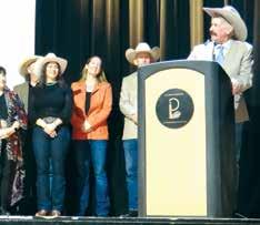 2021 - R.W. Hampton accepted the presti gious “Chester A. Reynolds Memorial Award” at the 60th Annual Western Heritage Award Ceremony. The award is among the highest honors given to a recipient that “exemplifies the ideals of individualism, honesty, humility and integrity…demonstrating an unwaver ing commitment to Western ideals and val ues.” R.W. told the audience that “my best moments of being a cowboy are when being alone…just myself, a good horse, and God Almighty…and I’m so proud to be honored by folks in this industry that I respect so much and to be surrounded by family and friends!” R.W. then led the 1200 black-tie attendees through the gospel standard, “How Great Thou Art.” Among the celebrities were Reba McEntire, George Strait, Robert Duvall, Rex Linn and others.