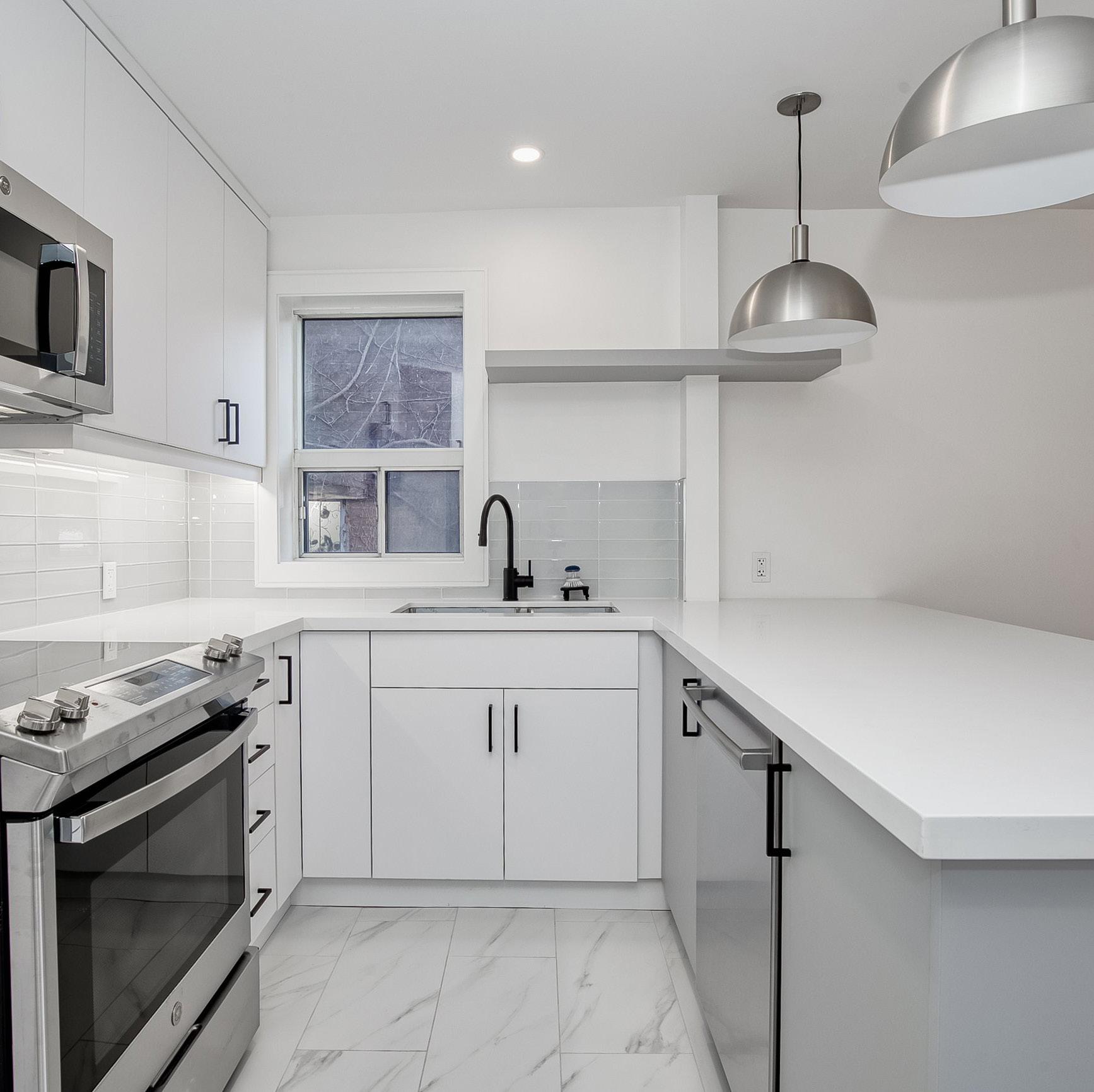 Completely renovated floor to ceiling: This Suite is a stunning 3-story, 1,900 sq ft space with 3 balconies, either a 5 bedrooms layout or 4 bedroom plus private home office. It is completely renovated, with all new hardwood flooring, stainless appliances, bathrooms and kitchens, and built in closets throughout.