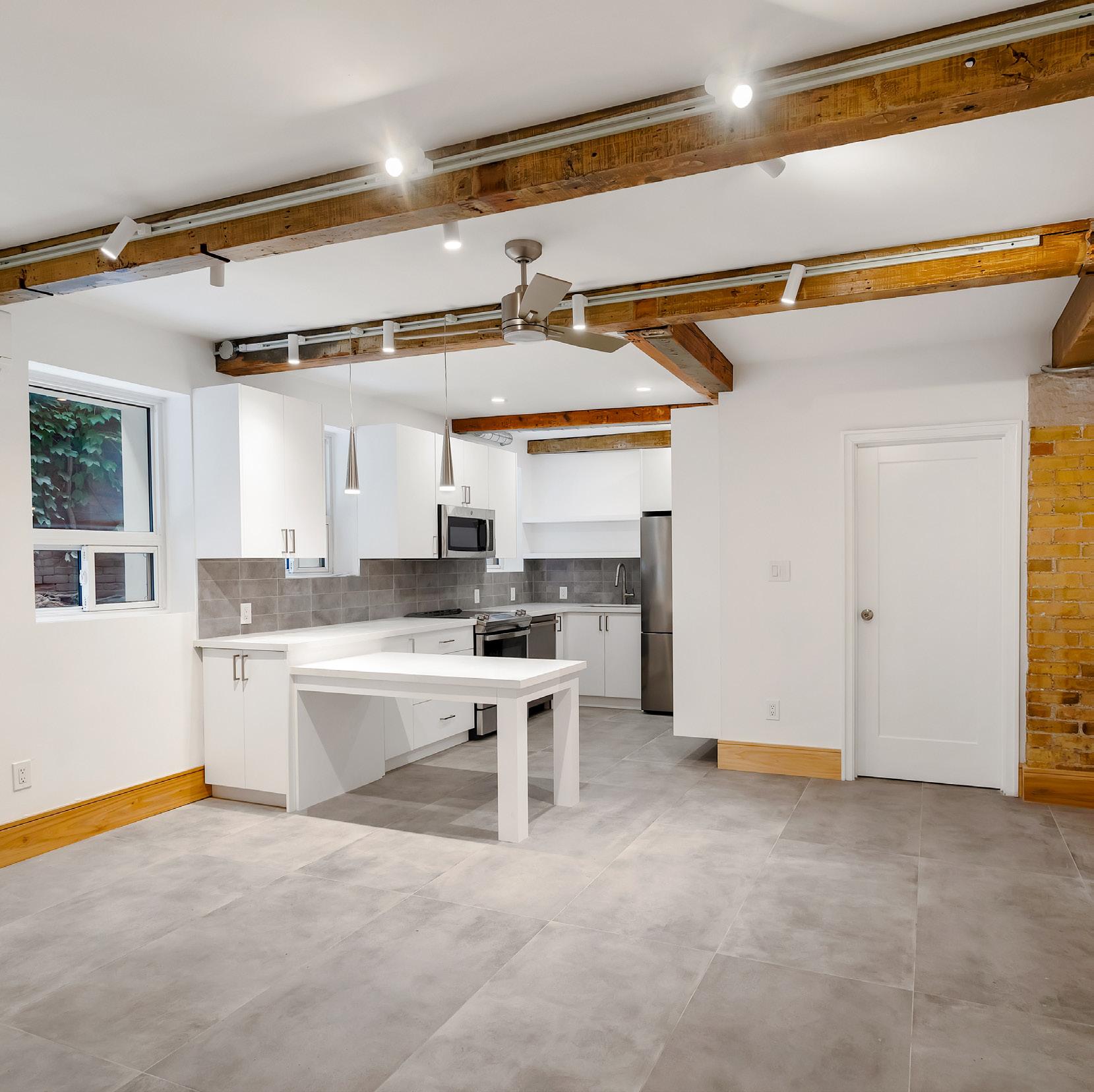 Elegantly redesigned, this pristine 1-bedroom suite has never been lived in since its full renovation as part of the Restoration Program undertaken at 97 Lee Ave. Inspired by a New York industrial loft, this suite stands out uniquely. Every detail has been upgraded: from the sleek new flooring and top-tier stainless steel appliances to the new bathroom and spacious kitchen. The custom kitchen boasts abundant storage, an integrated dining table, and sophisticated finishes. Highlights include exposed brick accents, large barn door, contemporary pot lighting, ceiling fans, 2 wall AC units, exposed and restored original beams, and the convenience of ensuite laundry. Such high-caliber offerings are rare, so seize this opportunity while it’s available. Situated in the vibrant heart of the Beaches, your mere steps from Queen St W and the tranquil beach. With quick access to the streetcar, you’re just a ride away from the bustling Bay Street Financial District. Immerse yourself in a lifestyle rich in outdoor experiences.