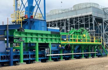 Twin 36 x 60 dual Rawlings Vertical Hogs processing chip overs at a pulp and paper mill in Arkansas