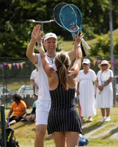 The hard work from the tennis sub-committee paid off when over forty people arrived in the morning, many in dress from the past 100 years and playing with a wooden racket, to play in the fun, social Anniversary Tournament (won by Siri Egan and Edward Roy). A steel band provided entertainment at lunchtime and there were many activities for everyone to participate in during the day including a mini tennis tournament for the juniors.