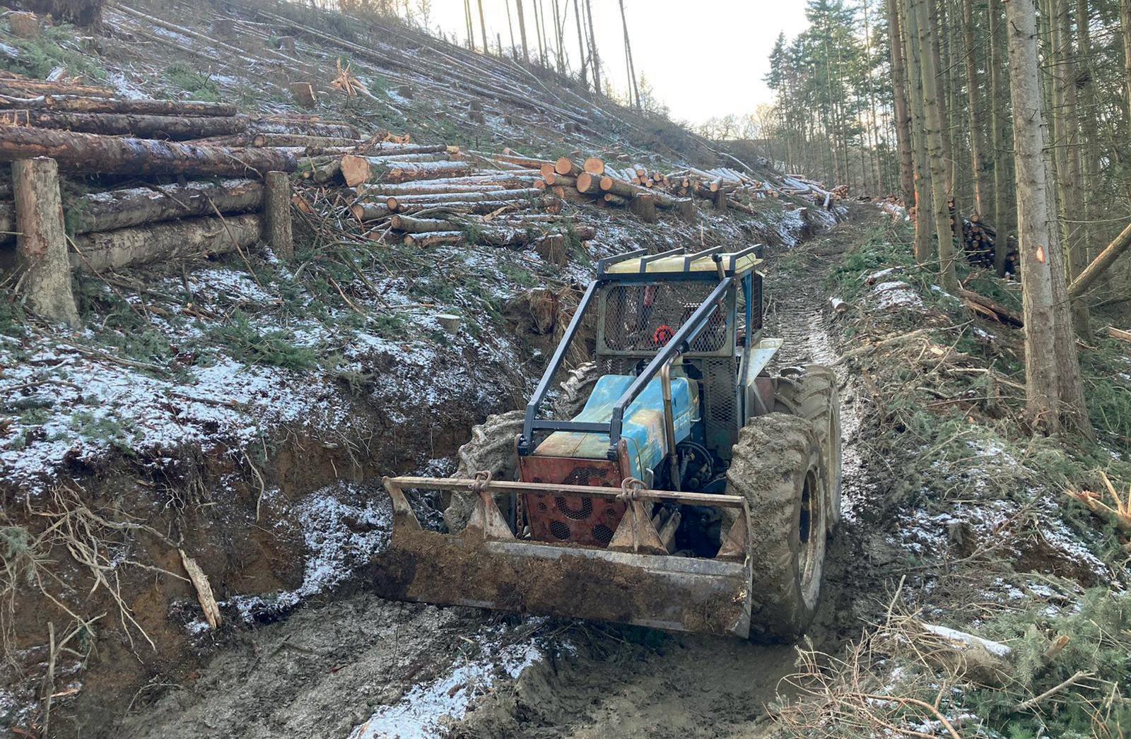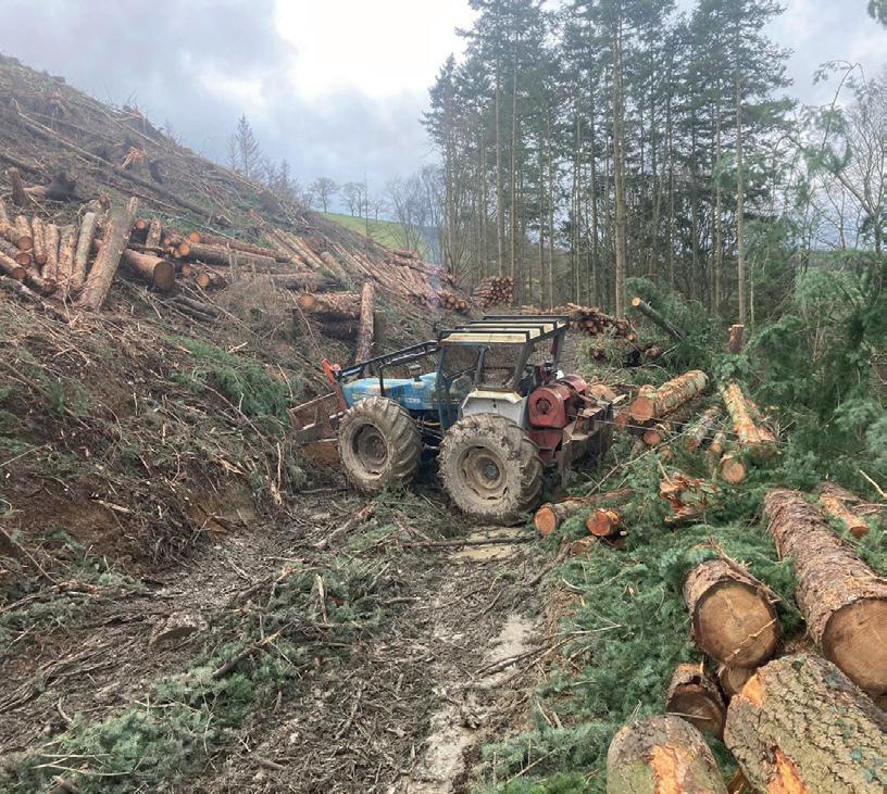 This is unfair as surely the roads should be fit for purpose, our vehicles suffer excessive wear and tear, timber lorries end up with punctures and damage and how do we expect emergency service vehicles to access sites when roads are almost nonexistent. Landowners blame harvesting equipment, but they rarely travel on the road and forwarders unload timber from the woodside whenever possible. Rant over!