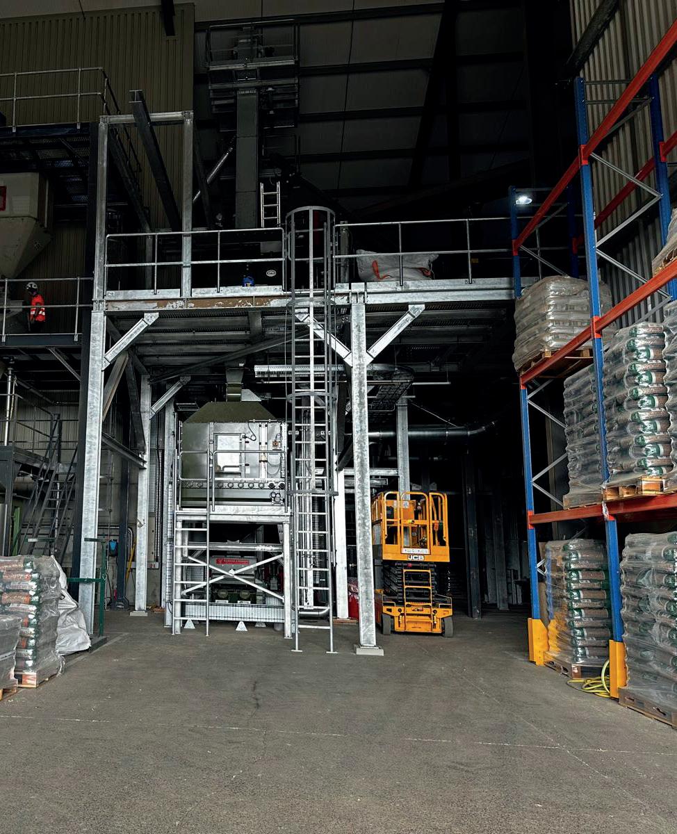 Having commissioned the CHP plant, Sam could see others joining the woodchip supply market and causing prices to drop to unsustainable levels. With this in mind, Sam took another bold step later in 2017 when he built a wood pellet production plant right next to the biomass boiler, utilising the heat and power from the CHP plant to produce EN Plus A1 wood pellets - the highest quality available and all