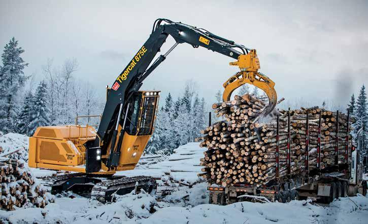 The new Tigercat X877 track feller buncher is the next model built on the innovative sloped tail platform to roll off the assembly line and into a Canadian logging operation.