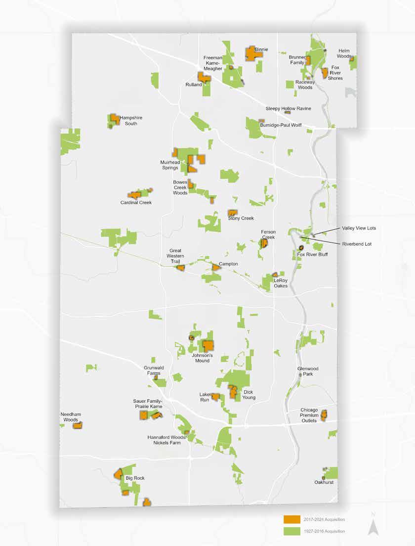 n Additional acreage helps us make trail connections. More than 116 acres were added alongside the Great Western Trail in Campton Hills. Work is also being done to connect the Great Western Trail to the Fox River Trail.