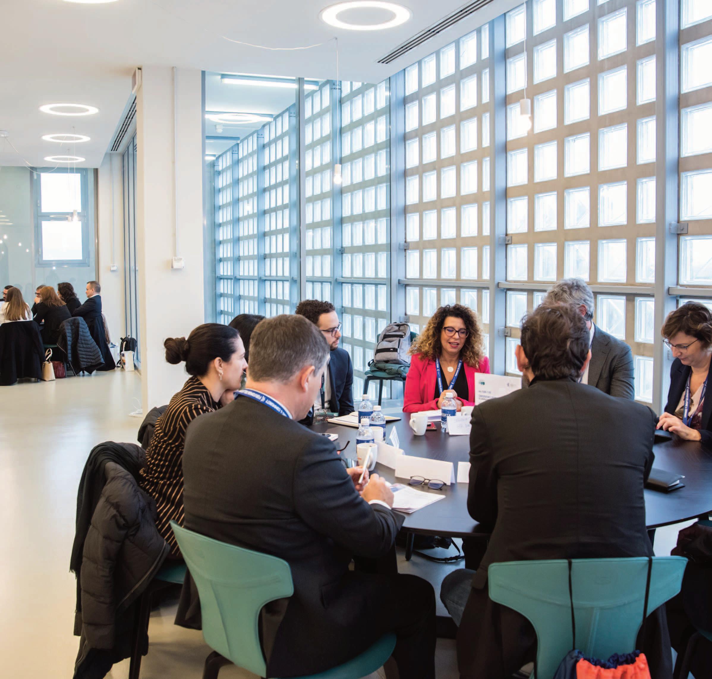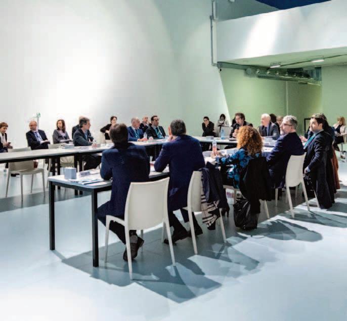 Includes relational desks for meetings with HR professionals, managers, and guests from Italy and abroad.