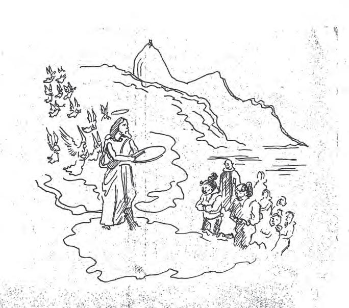 ringen har lagt på hans tunge: “Når de sølle døbte mennesker engang skal stedes for den store trommestrid for at høre deres handlinger offentligt udråbt, vil jeg klatre op på Kingigtorssuaqs top og glæde mig over deres forsmædelighed over et bundt tørrede angmagssætter og en beholder med sæltran.”