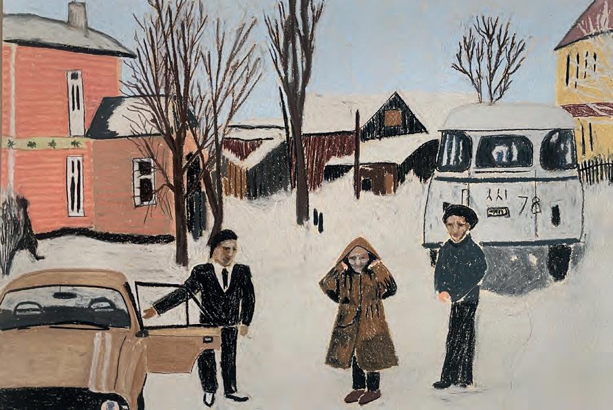 i Onega-floden, åbner der sig endnu en bydel, hvor det danske hus Campen ligger. De danskere, der kom til byen for at arbejde på træfabrikken i midten af byen, boede i et dansk sommerhuslignende sortmalet hus med rindende vand, opvaskemaskine og et toilet, der kunne skylle ud. En seværdighed i byen. Danskerne brugte hvide underkopper og drak kaffe. Da jeg var to år, mødte du Jan, som arbejdede som elektriker for fabrikken, der eksporterede træ fra de