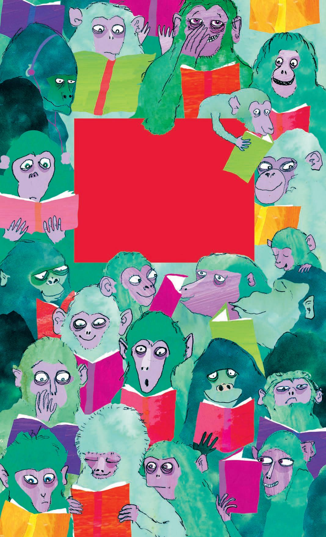 Bilderbokskonstnären Linda Bondestam , som i höst är aktuell med bilderboken Konkarongen, har skapat katalogens omslag. Bilden föreställer ett gäng apor som fått tag på Förlagets höstutgivning. Linda tänkte på allt det fantastiska som litteratur är och tecknade så att pennan glödde för att förmedla känslan av hur det är att vara uppslukad av en riktigt bra bok. Vem som läser vad får var och en bestämma själv.