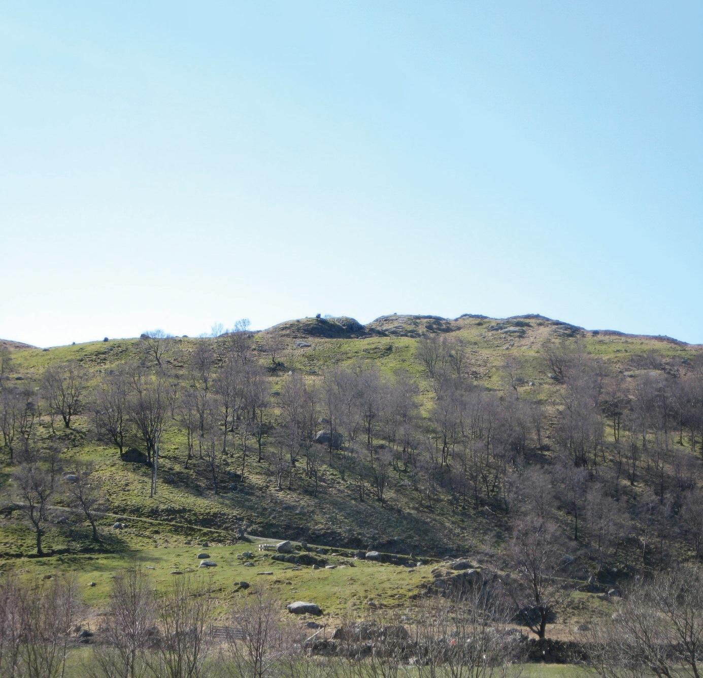 Jens Johannessen landet i forgrunnen. I bakgrunnen Nonsknuten, hvor vaulekarene hadde utkikk den natten da Gestapo kom til Vaule etter at Otto Olsen ble arrestert. (Foto: Nils Helge Amdal).