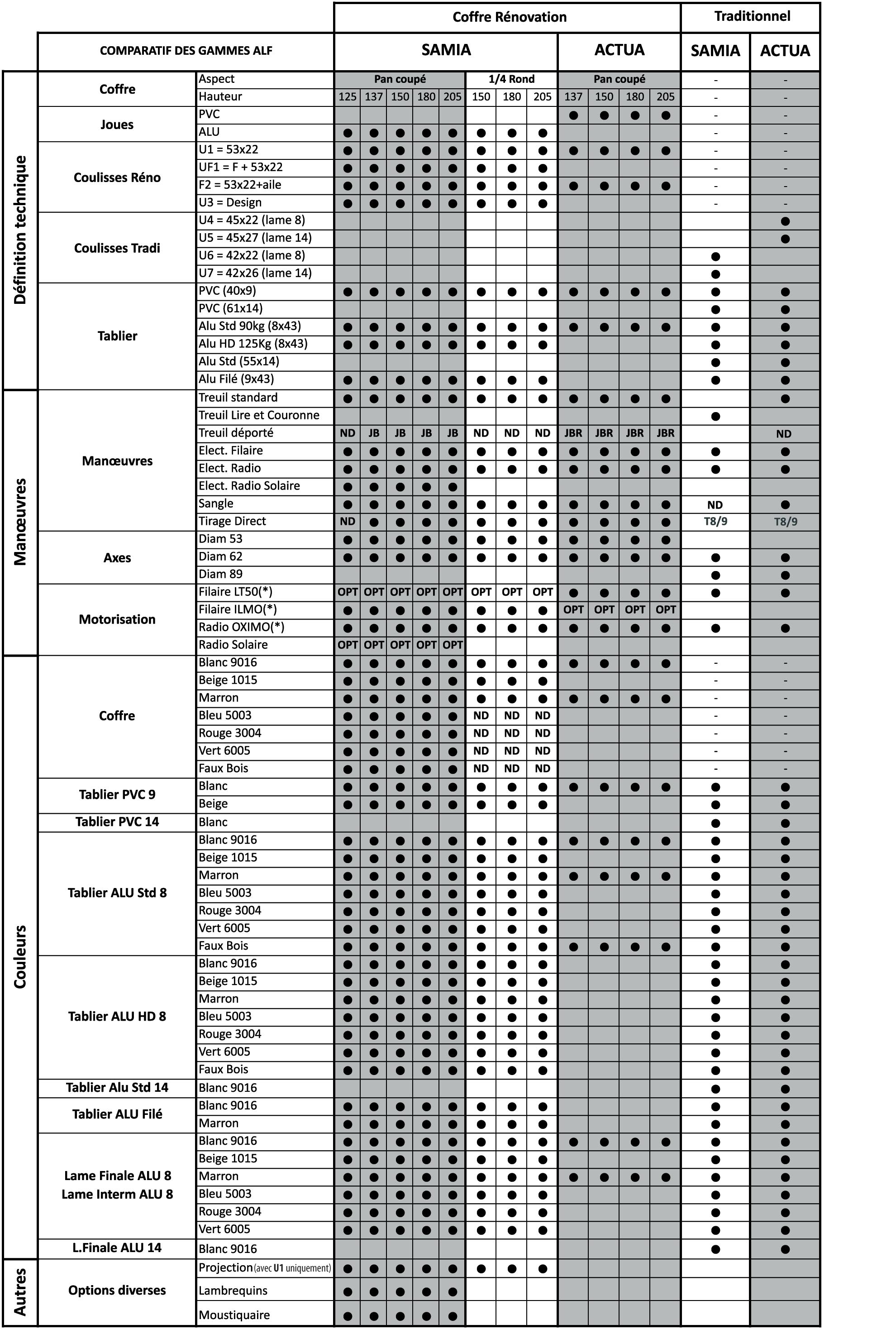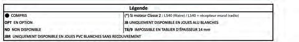 Se réferer au comparatif des gammes en dernière page pour le détail des disponibilités et compatibilités de coloris