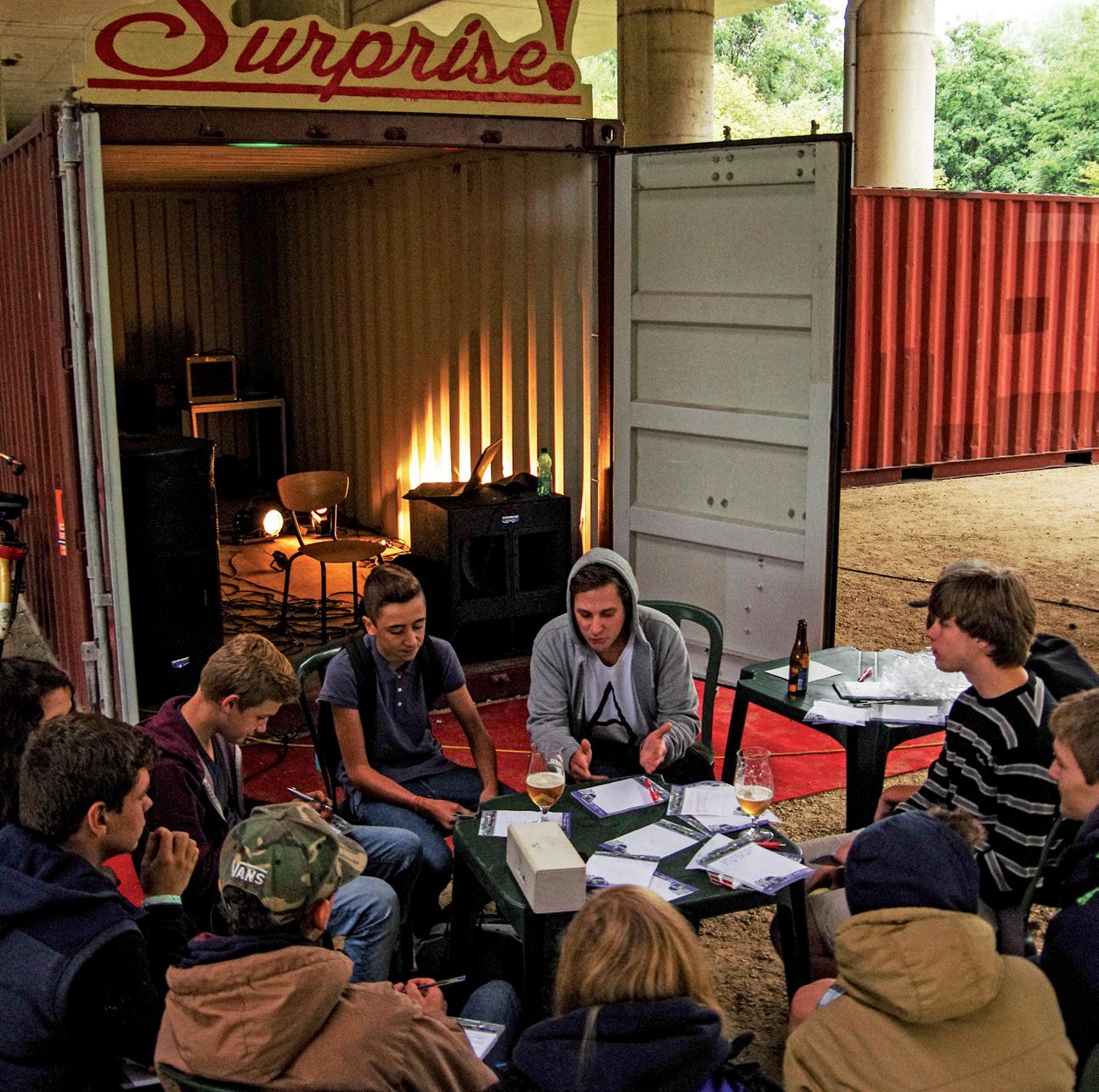 menselijke aanpak. De vertrouwensband met de jongeren staat centraal. En zodra die bestaat, komen alle thema’s aan bod. Jongeren kunnen met alle vragen en verhalen bij mij terecht. Dat is voor hen enorm waardevol. Het gevoel niet alleen te moeten staan, dat is écht iets groots. Die vertrouwensband is ook om andere redenen cruciaal: het zorgt er ook voor dat je kan botsen. Ik kan van mening verschillen met gasten. We zitten niet altijd op dezelfde lijn en we kunnen daar écht ruzie over maken. Maar da’s oké. We zetten elkaar aan tot nadenken. Want het is net wanneer je in onverwachte situaties terechtkomt of met andere standpunten wordt geconfronteerd, dat je dingen bijleert. Dat geldt voor mij én voor de jongeren. Dat zit ook heel mooi vervat in de wortels van het woord educatie: dat betekent letterlijk ‘wegleiden uit’. Je zou het ook kunnen interpreteren als ‘iemand meenemen naar een nieuwe plek’. En dat kan je met een jongere ook perfect doen zonder het plein te verlaten waar die elke dag rondhangt.”