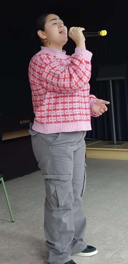 COLABORACIONES Angie Rendón es una alumna más de la extensión de Orihuela. Cuando se matriculó no podíamos imaginar que detrás de esa voz suave y esa trabajadora constante se esconde una gran vocación musical, compositora y cantante con una voz impresionante. Angie tiene, a pesar de su corta edad, una larga experiencia en este mundo y, tanto en el Karaoke como en la fiesta de graduación, pudimos disfrutar de su talento. Empezó en el mundo de la música con solo 10 años y participó en 2021 en el programa de talentos Factor X en Colombia, su país natal.