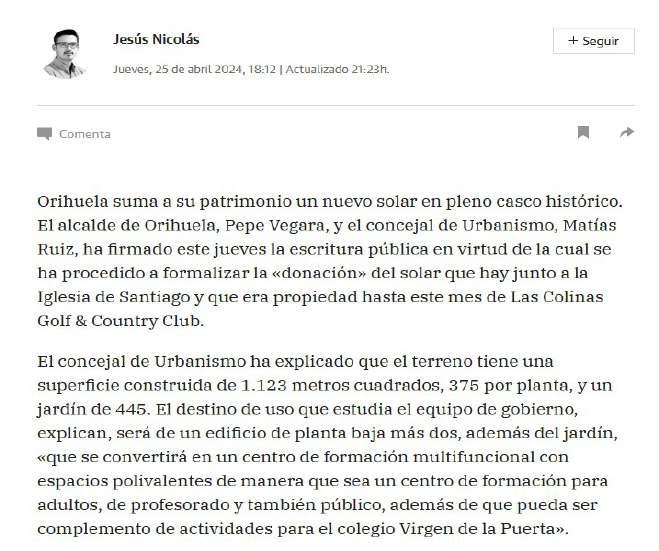 Que una gran ciudad no haya sido capaz de dotar de una sede propia a su escuela de adultos, problema que no tiene ningún otro municipio valenciano, nos obliga a reflexionar sobre qué papel juega la educación en Orihuela. El anuncio de la construcción de unas instalaciones educativas en las que se ubicará, en un futuro cercano, nuestro centro nos llena de esperanza.