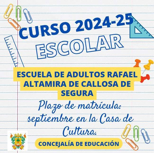 EnÊelÊpresenteÊcurso,ÊlaÊEscuelaÊdeÊAdultosÊMunicipalÊRafaelÊAltamiraÊyÊlaÊExtensiónÊdelÊFPAÊdeÊCallosaÊdeÊSeguraÊhanÊseguidoÊtrabajandoÊconjuntamenteÊparaÊpoderÊofrecerÊ2ÊnivelesÊdeÊSecundariaÊ (GESÊ1ÊyÊGESÊ2),ÊdosÊcursosÊdeÊCastellanoÊ(A1ÊyÊA2),ÊademásÊdeÊlasÊ pruebasÊdeÊA1ÊdeÊValencianoÊyÊA2ÊdeÊInglés.Ê