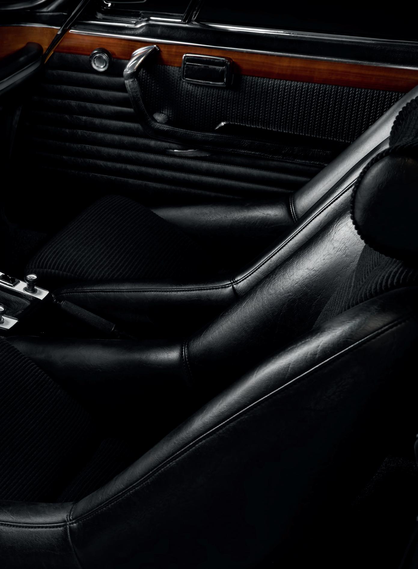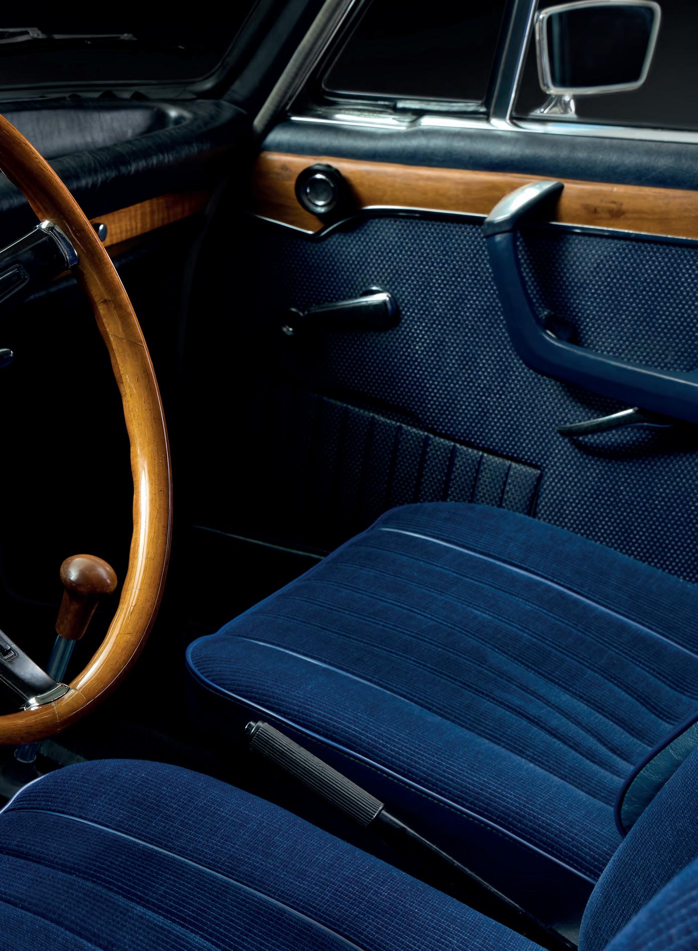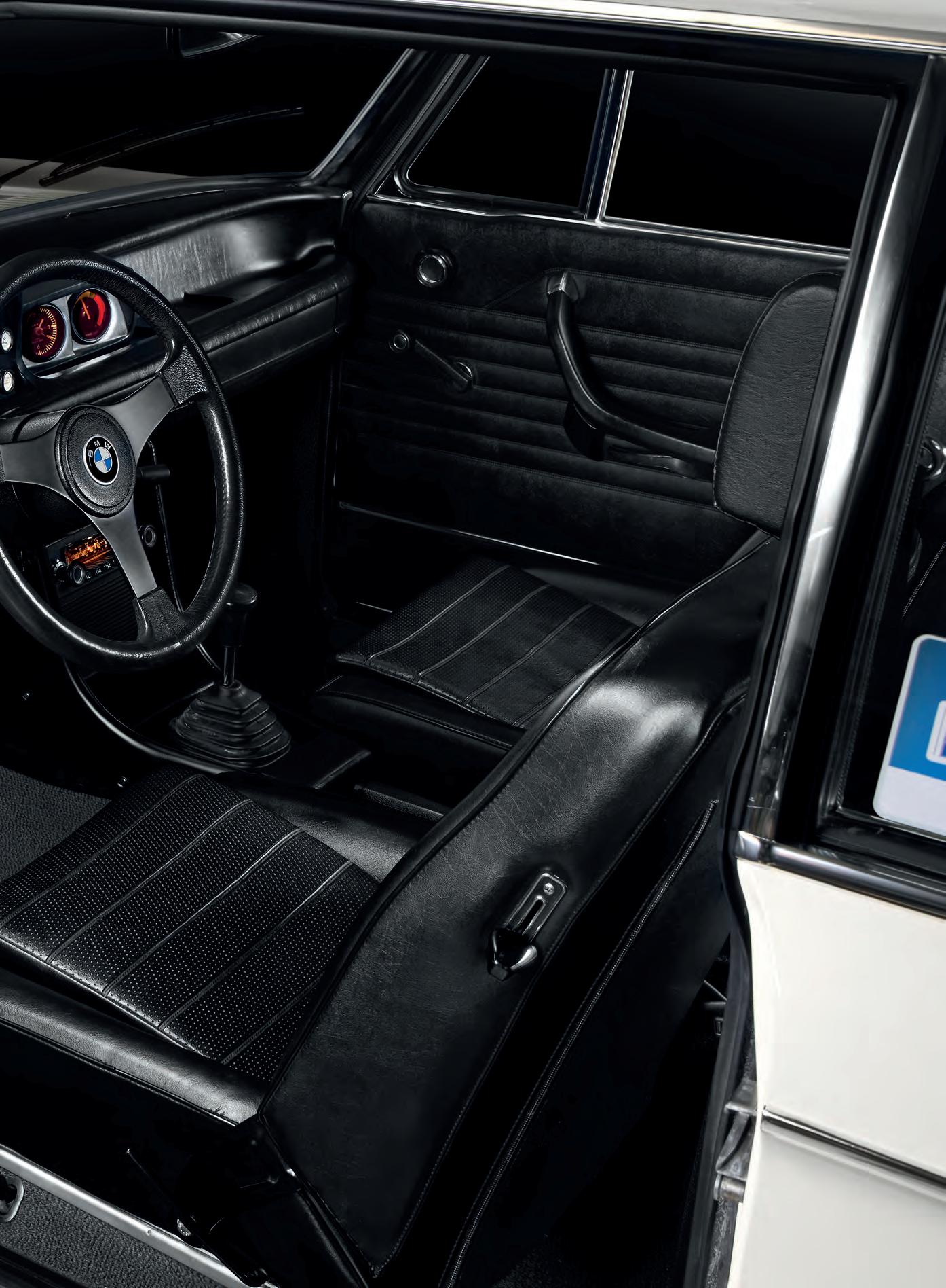 It was impossible to obtain the original striped cloth. The solution was to buy Scheel seats from Porsche, also from 1973. They looked a bit different, but they made the upholstery of the same material, which was a real pain. Once the upholstery had been repositioned, the interior of the BMW again looked as it did in the early 1970s.