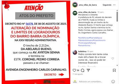 A expansão imobiliária é uma realidade que não pode ser ignorada, mas o modo como ela acontece depende de nós. A AMA segue firme em sua missão de ser guardiã da qualidade de vida, zelando para que o crescimento da Barra Olímpica seja sinônimo de progresso com responsabilidade, inclusão e respeito à vida em comunidade.