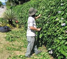 Poda das tubérgias (cerca viva) na calçada da Av das Américas.