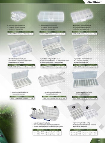 • providna plastična kutija • više komora sa pokretnim pregradama • sistem za spajanje dve ovakve kutije u jednu Broj