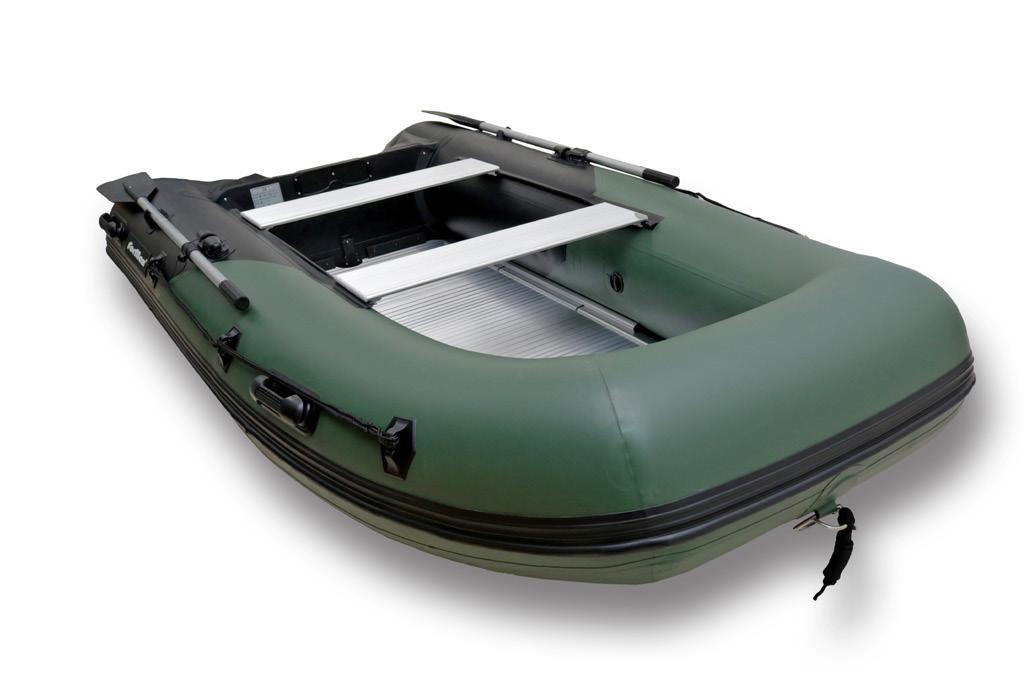 Barcă gonflabilă de înaltă calitate cu fund din aluminiu dur și plăci de ședere din aluminiu (3,00 m - are două plăci, 2,40 m - o placă). Este fabricată din PVC cu o grosime de 0,9 mm și are 3 camere separate + o chilă gonflabilă. Este echipat cu vâsle din aluminiu, pompă de umflare cu piciorul și kit de reparații. Pe ea pot fi amplasate motoare electrice și cu combustie (3,00 m - până la 10 CP, 2,40 m - până la 5 CP). Are toată documentația necesară pentru înregistrare.