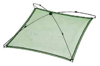 Ridicător de pescuit obleți de calitate superioară, dimensiuni standard 100x100 cm, dar cu plasă special concepută astfel încât să aibă și un mic „gard” din plasă.