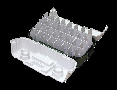 Juvelnic dreptunghiular de calitate, dimensiune deschidere 35x45 cm. Are primul inel din aluminiu, în timp ce celelalte sunt din plastic dur și elastic. Are un filet metalic standard pentru suport și un unghi reglabil al capului (găurii).