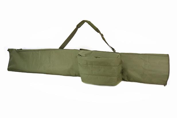 Suport de lansetă - un trepied, din aluminiu, deasupra căruia este așezat un suport de lansetă mare din neopren.