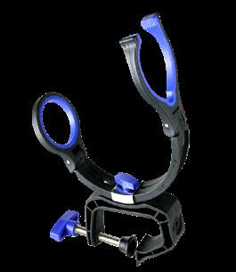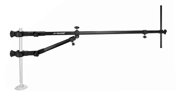 Suport transductor sonar portabil și universaL cu clemă laterală pentru barcă. Este fabricat din aluminiu cu anumite elemente din plastic.