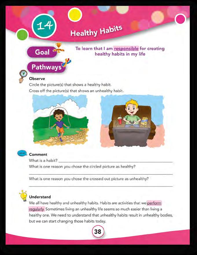 Reflect: The students will make a plan to start a new healthy habit. They will write the habit that they created in their workbook in the space provided or in their journal. Help the students answer the question of why they want to develop this specific habit.