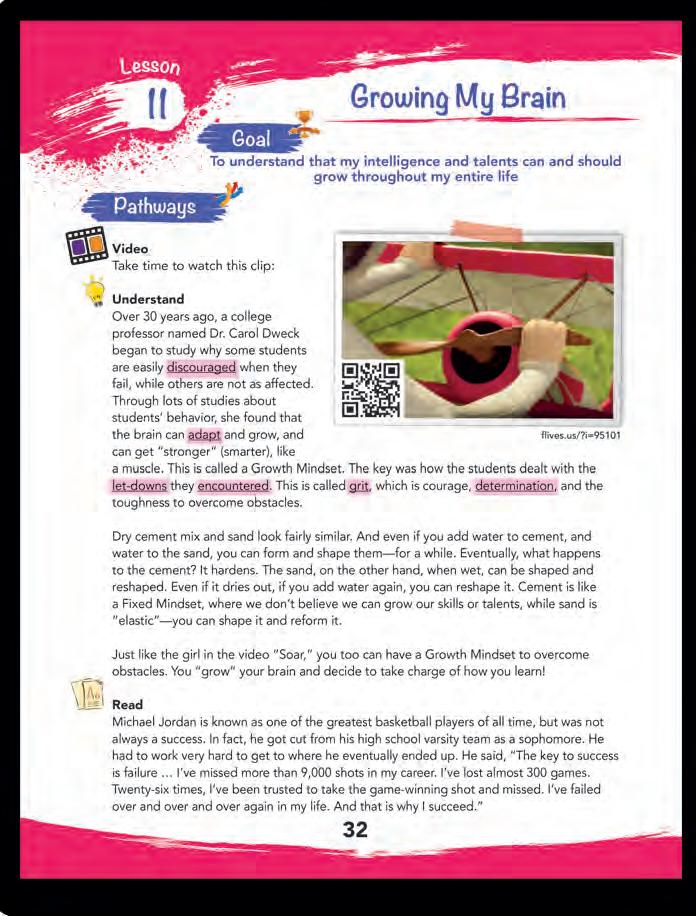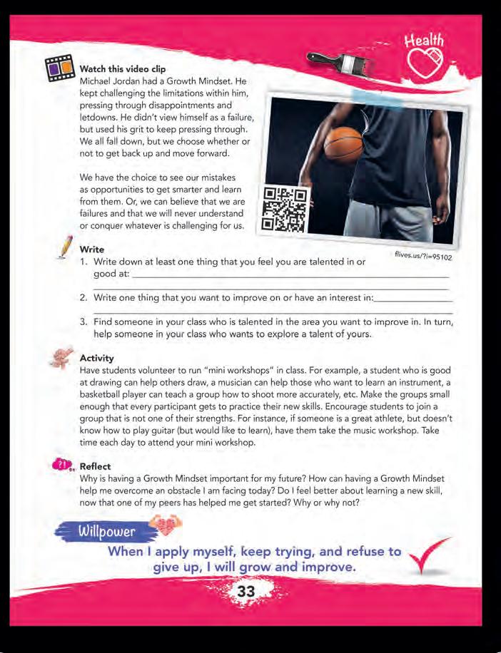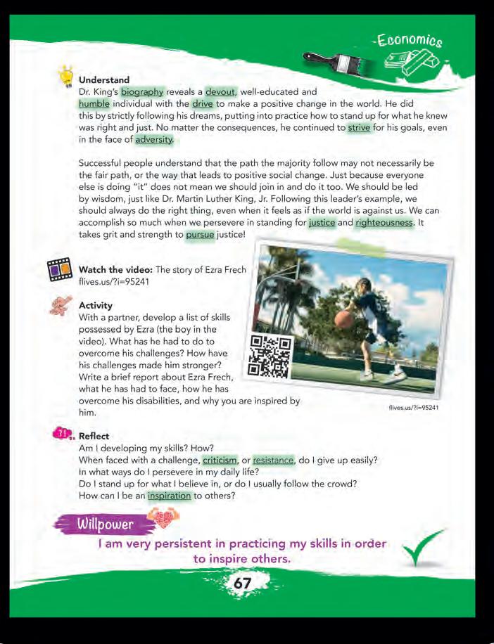 Reflect: Students will use these questions to evaluate their own level of motivation to accomplish their goals and to consider what type of influence they have on others. Students may feel more comfortable responding to them privately in their journals.