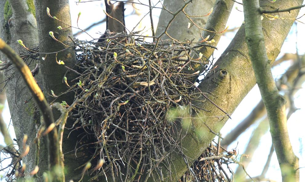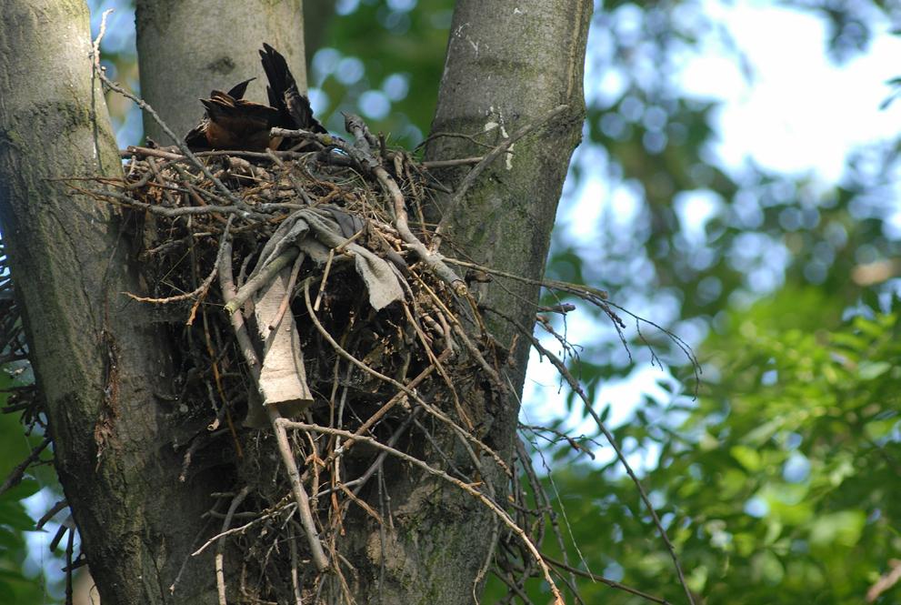 Die Horste der Schwarzmilane sind relativ klein. Beim Brüten ragt der Schwanz über den Nestrand hinaus. Auch hier wird häufig Plastikmüll eingetragen. Schwarzmilane brüten gerne in der Nähe von Mülldeponien. Hier ist für den Aasfresser reichlich Nahrung und »Nistmaterial« zu finden.