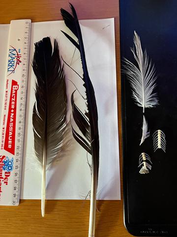 Mauserfedern vom Schwarzstorch bestätigen den Befund einer Horstnutzung mit den Fraßresten.