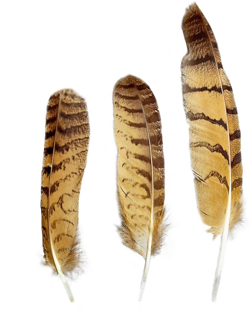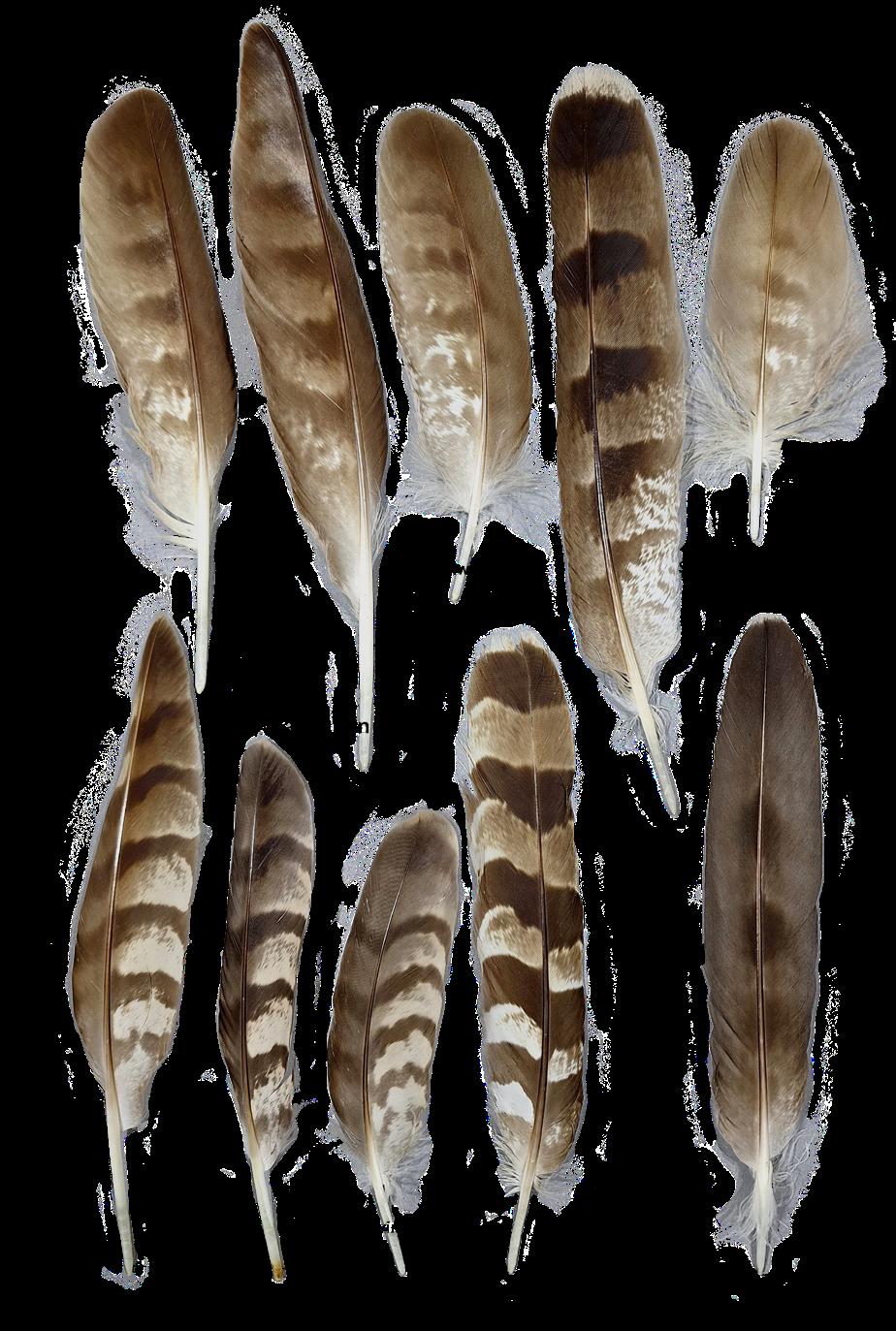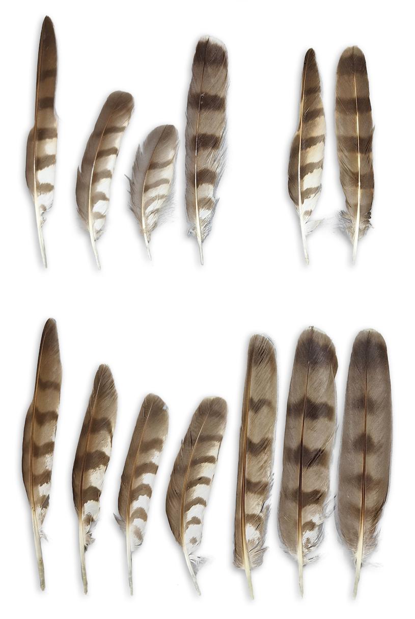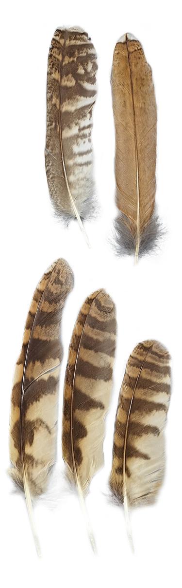 Mauserfedern vom Rotmilan unter dem Horst.