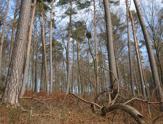Horstbäume sind obligatorische Habitatbäume und werden erhalten. Das Arrangement der Nachbarbäume zu Habitatbaumgruppen, gemäß der Naturschutzleitlinie (NLL), sorgt als Puffer vor Auflichtung der unmittelbaren Horstumgebung und hilft den Bestandscharakter zu
