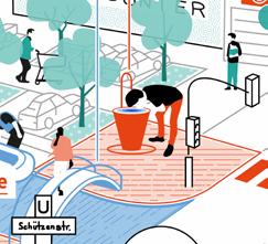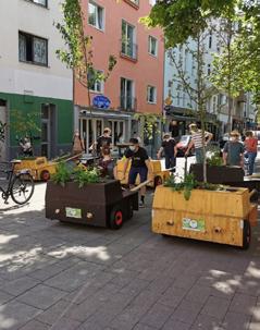 mische, auszuwählen, zu organisieren wie die Bäume von einem zum anderen Standort kommen, wer sie pflegt und wo sie nach Ende der Aktion verbleiben. Es gibt zwar einiges zu bedenken - aber es lohnt sich. Der Blickwinkel weg von Straßen als ausschließliche Parkplatzzonen hin zu klimaangepassten öffentlichen Räumen wird immer dringlicher. Ein Blick in die Nachbarkommunen zeigt jedoch ein Manko der Wanderbäume: die Verstetigung der Standorte. Hier gilt: dran bleiben, nachfragen, Druck machen. Denn aus den temporären Bäumen sollen ja dauerhafte Bäume werden und daran kann sich Jede*r beteiligen!