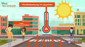 © iResilience 2020: Die Schützenstraße am Sommertag, versiegelte Flächen mit wenig Grün heizen sich tagsüber auf und geben die Hitze nachts wieder ab