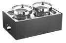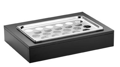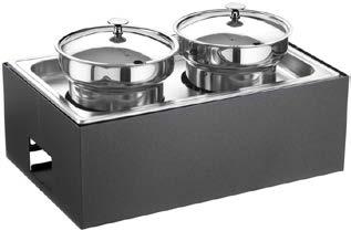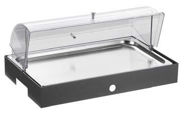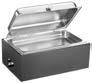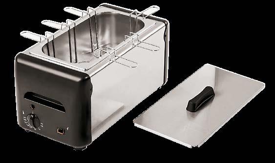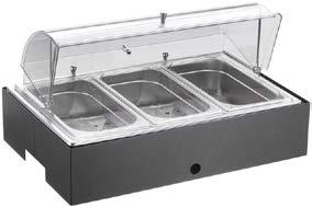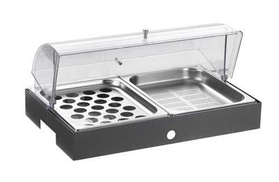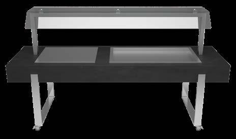 Sul piano è incassata una vasca riscaldata di dimensione 194x52 cm (6 GN1/1) elettrica a termperatura controllata da +30° a +90°C