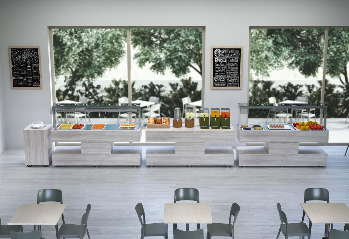 Consente in poco spazio di avere una precisa divisione dell’offerta food e di non creare affollamento davanti al buffet.